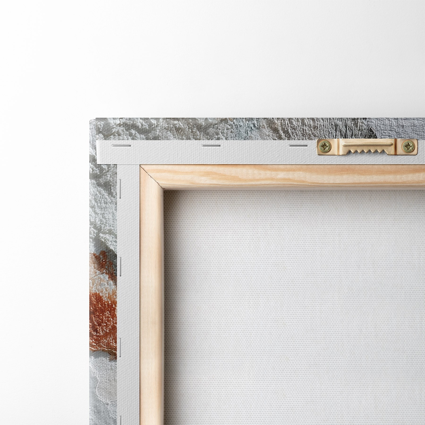 Je kunt het schilderij ophangen aan schroeven. Hiervoor leveren we bevestigingen bij onze foto's, zodat je de foto gemakkelijk kunt ophangen.
