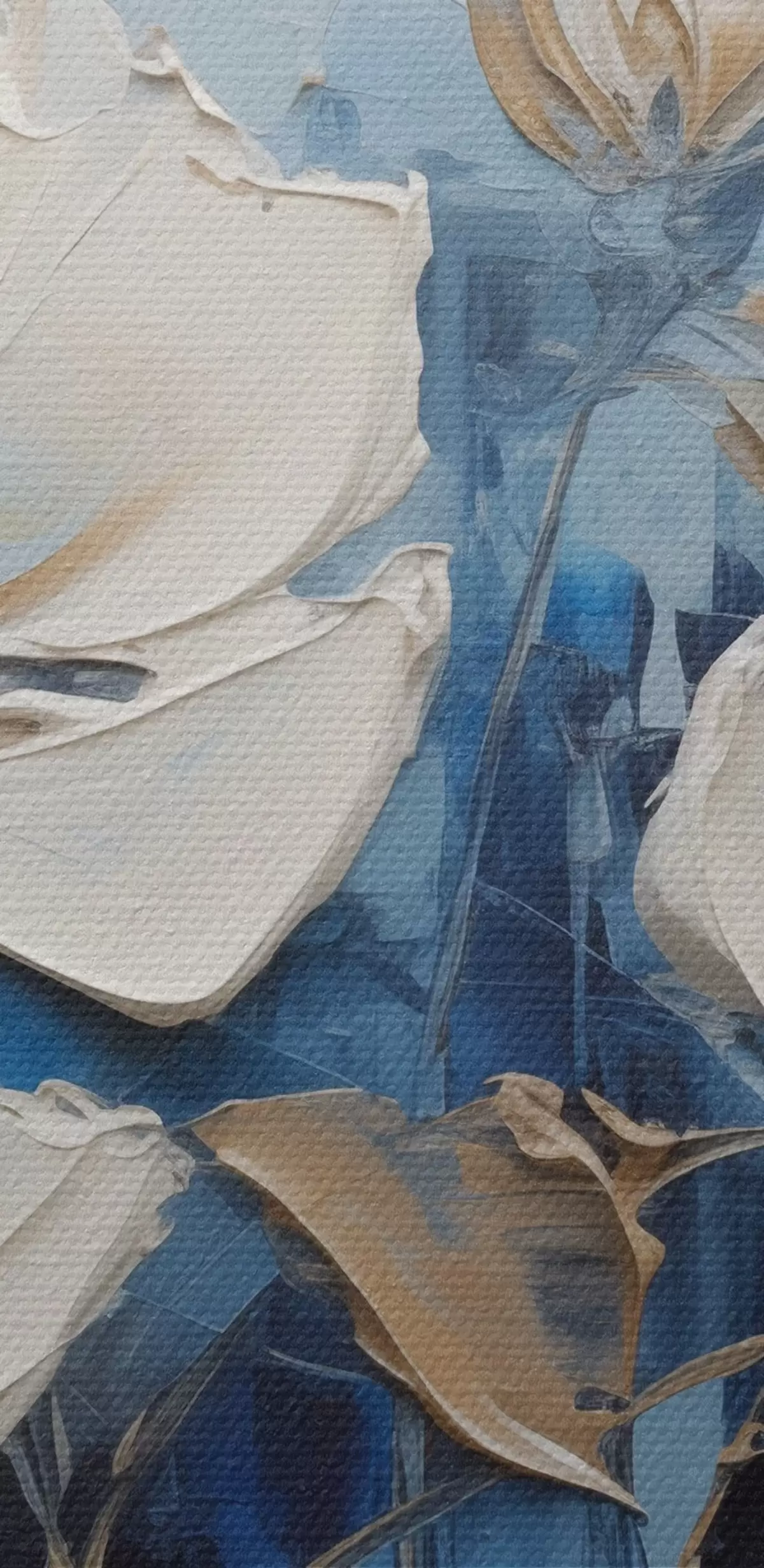 Het schilderij kan direct na ontvangst worden opgehangen. Het schilderij wordt opgespannen op een 2 cm breed houten spieraam.