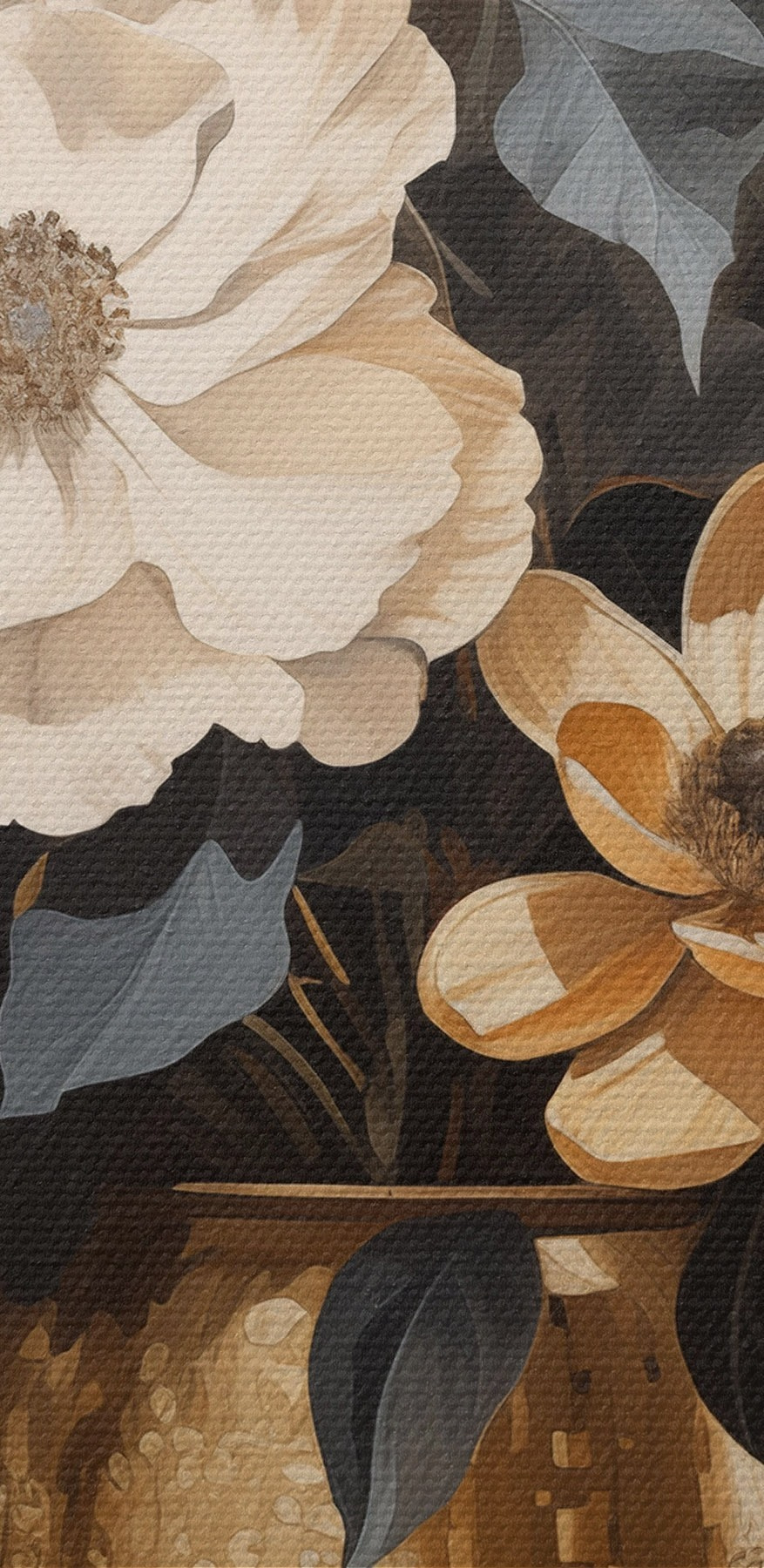 Er zijn drie soorten materiaal te bestellen: Economic Canvas - een dicht en duurzaam materiaal voor digitaal printen, identiek aan schildersdoek, waterdicht oppervlak, realistische weergave van details, materiaal met gemiddelde korrel. Premium Canvas - de textuur lijkt op die van schildersdoek (verweven kleine draden). Zachte, gedetailleerde reproductie van de afbeelding op een mat oppervlak. Eco-Premium - hoogwaardige 100% katoenen stof. Dankzij de natuurlijke katoenvezels is het materiaal duurzaam en slijtvast. Uitstekende kleurweergave en detail.