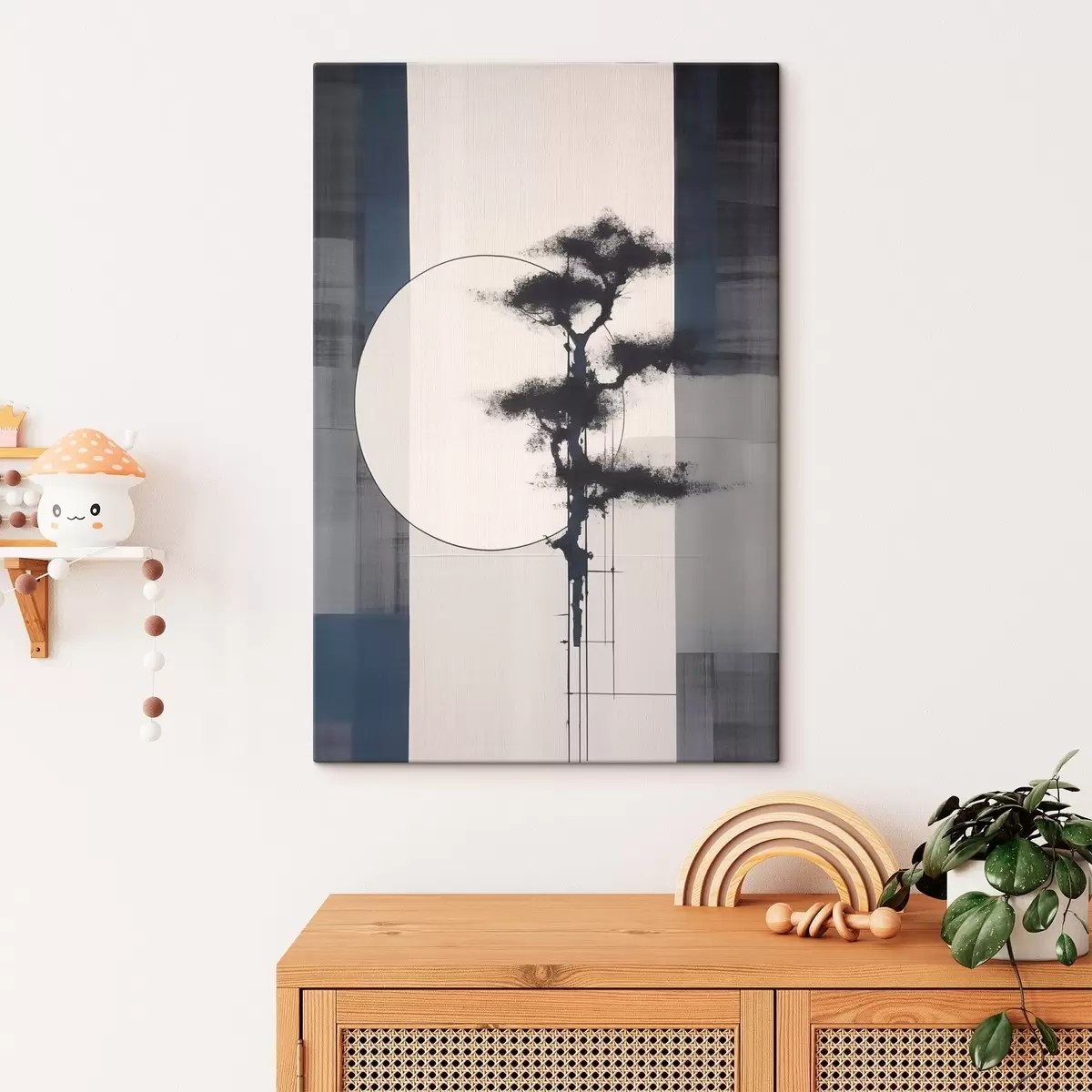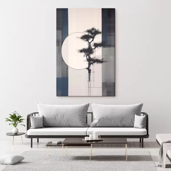 Schilderij Abstractie. Boom en zon. Japans minimalisme Art. s46463