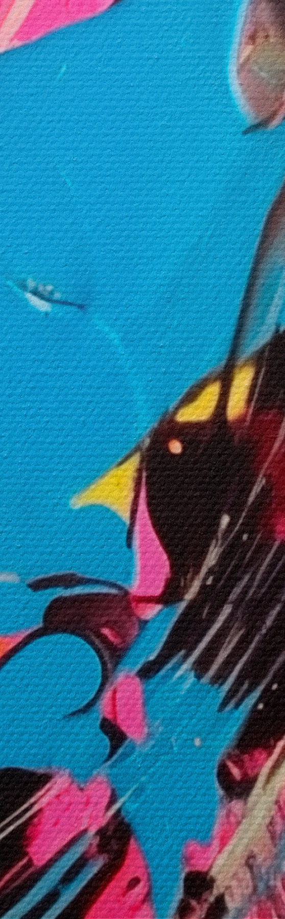 Het schilderij kan direct na ontvangst worden opgehangen. Het schilderij wordt opgespannen op een 2 cm breed houten spieraam.