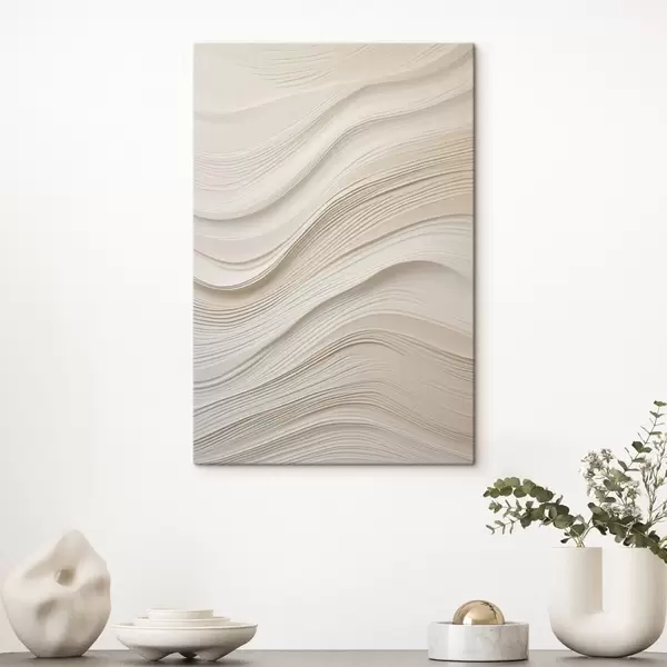 Schilderij Gelaagde zandkleurige reliëfgolven, zachte textuur Art. s46484
