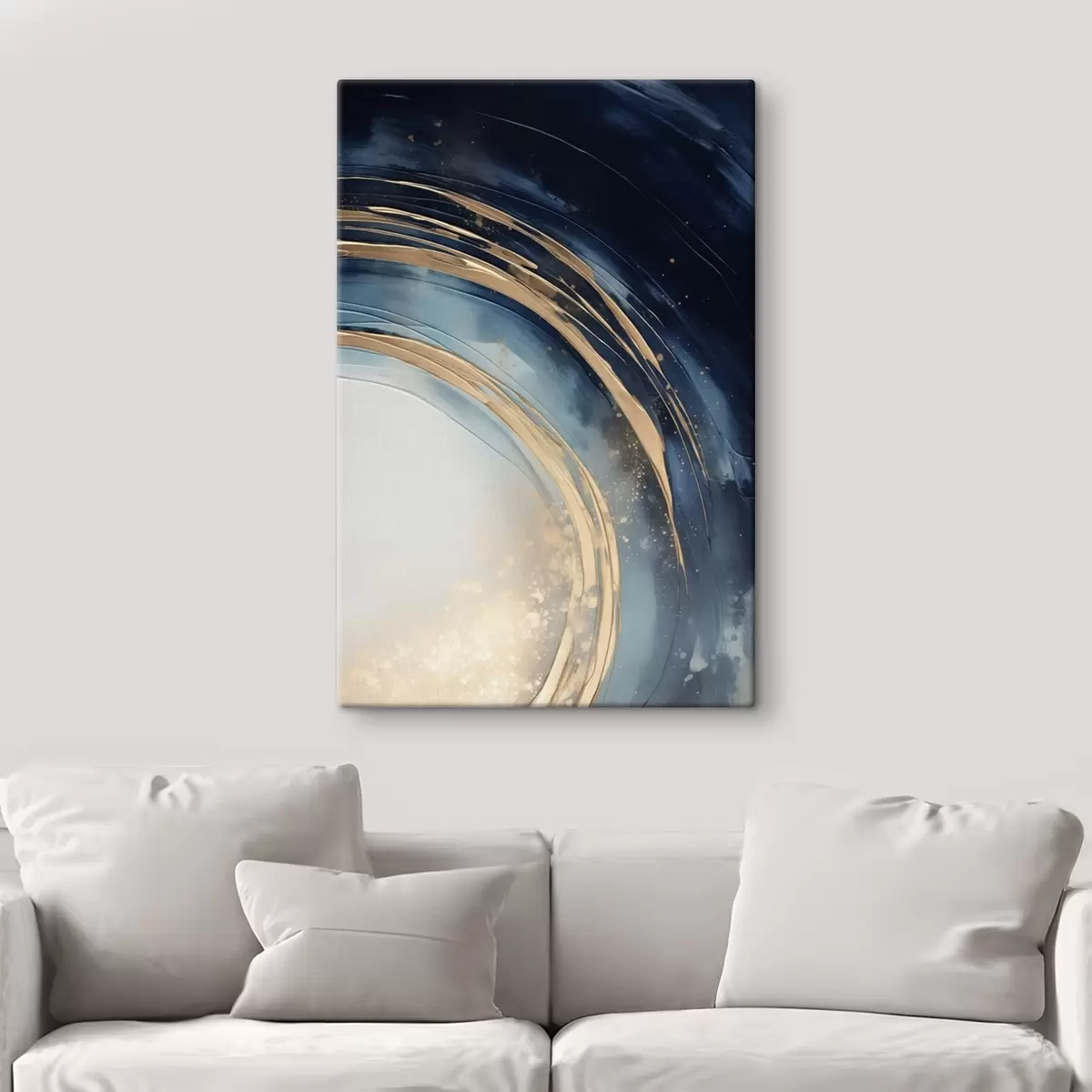 Het schilderij kan direct na ontvangst worden opgehangen. Het schilderij wordt opgespannen op een 2 cm breed houten spieraam.