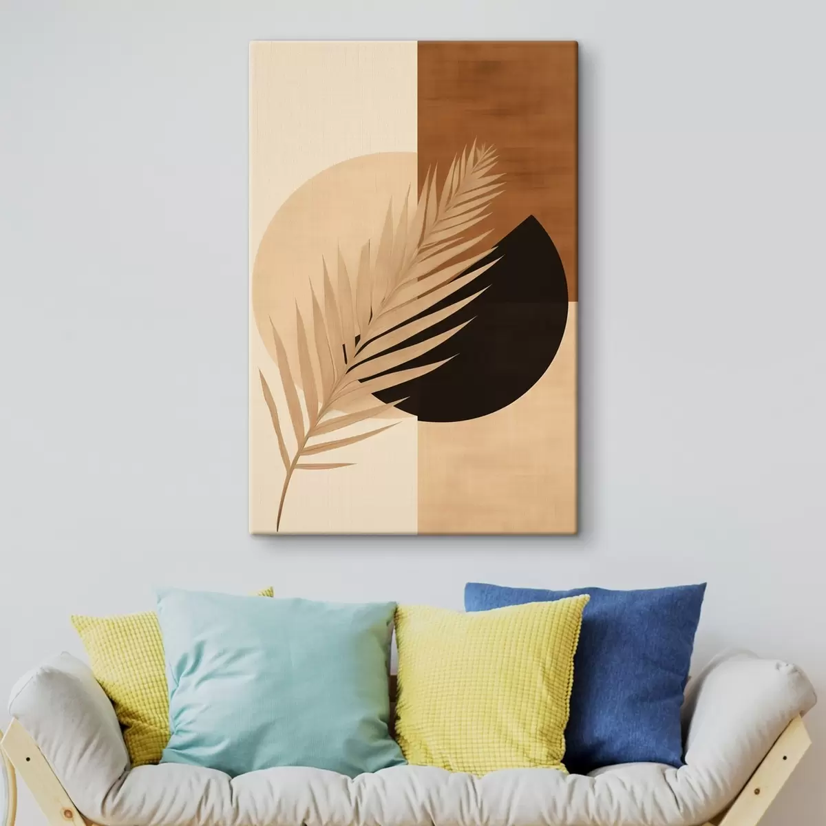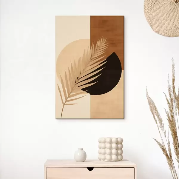Schilderij Palmblad boven terracotta en crèmekleurige geometrie Art. s46490
