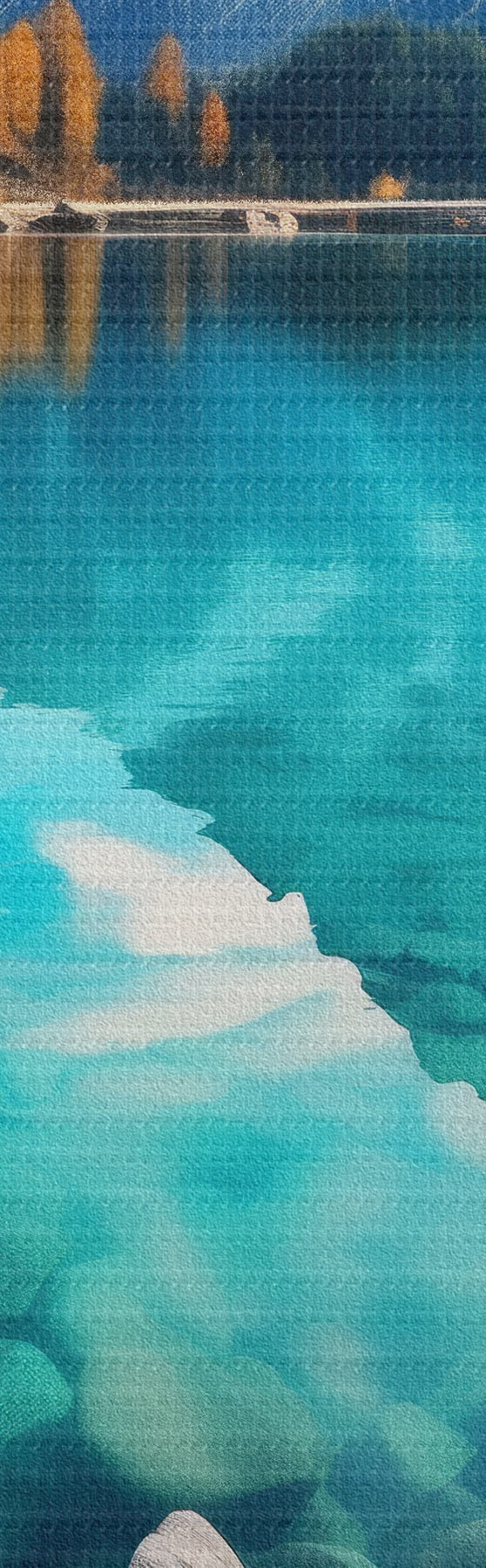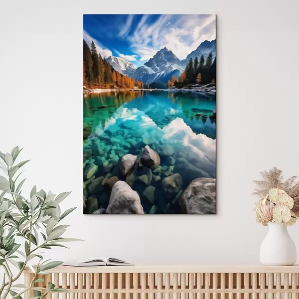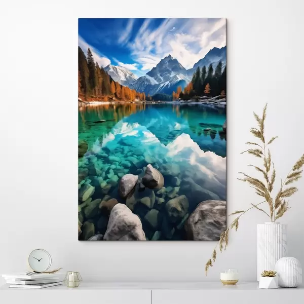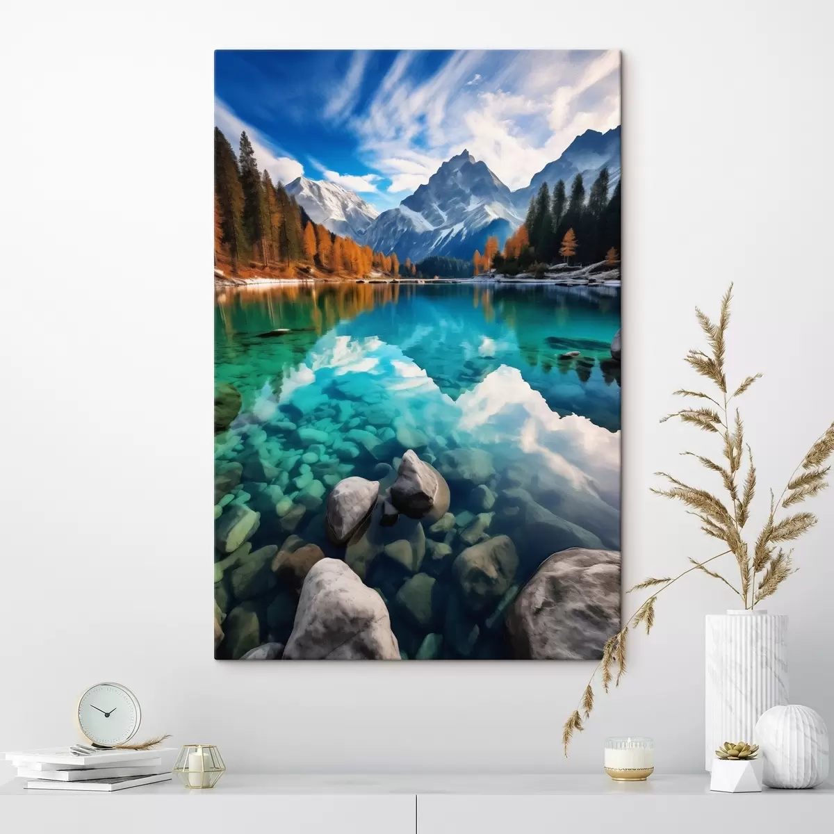 Schilderij Bergmeer met turquoise water en herfstlariksbomen Art. s46517