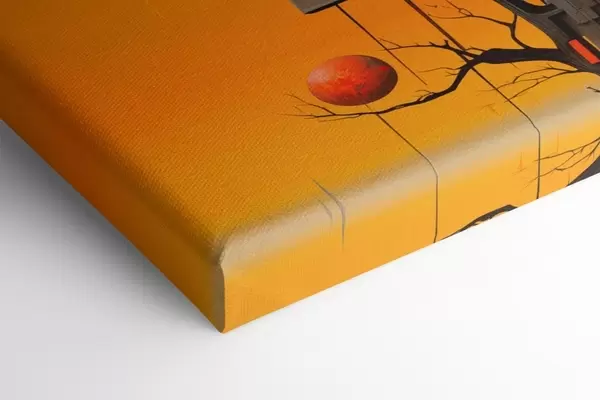 Schilderij Surrealistische boomhut tegen een oranje achtergrond Art. s46526