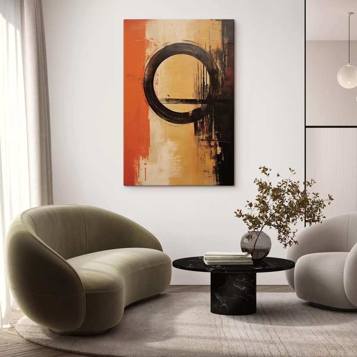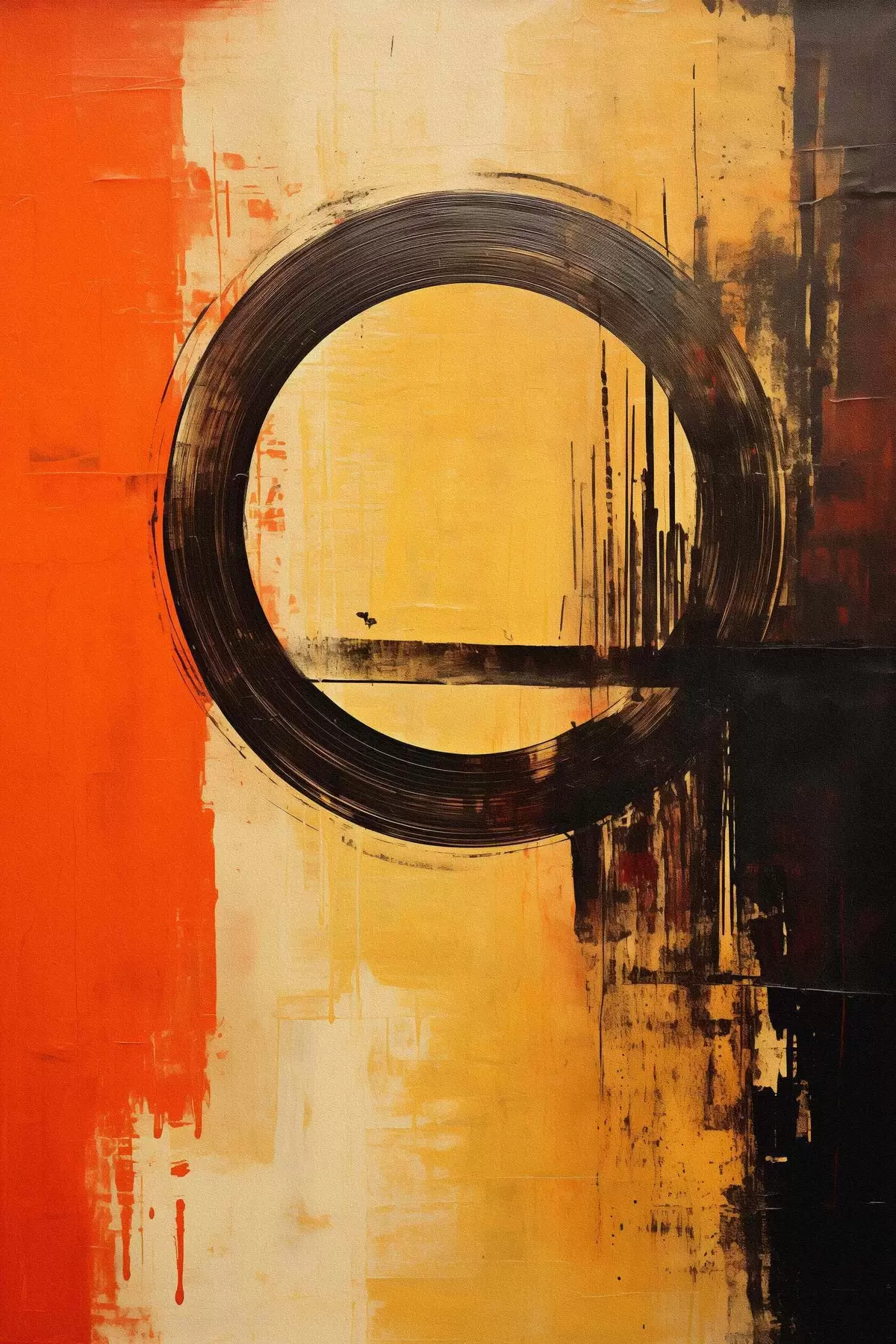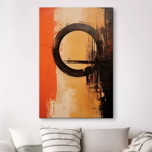 Schilderij Abstract met een zwarte ring op een terracotta-zandkleurige achtergrond Art. s46529