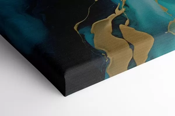 Schilderij Tealblauw abstract met een stroom oker Art. s46530