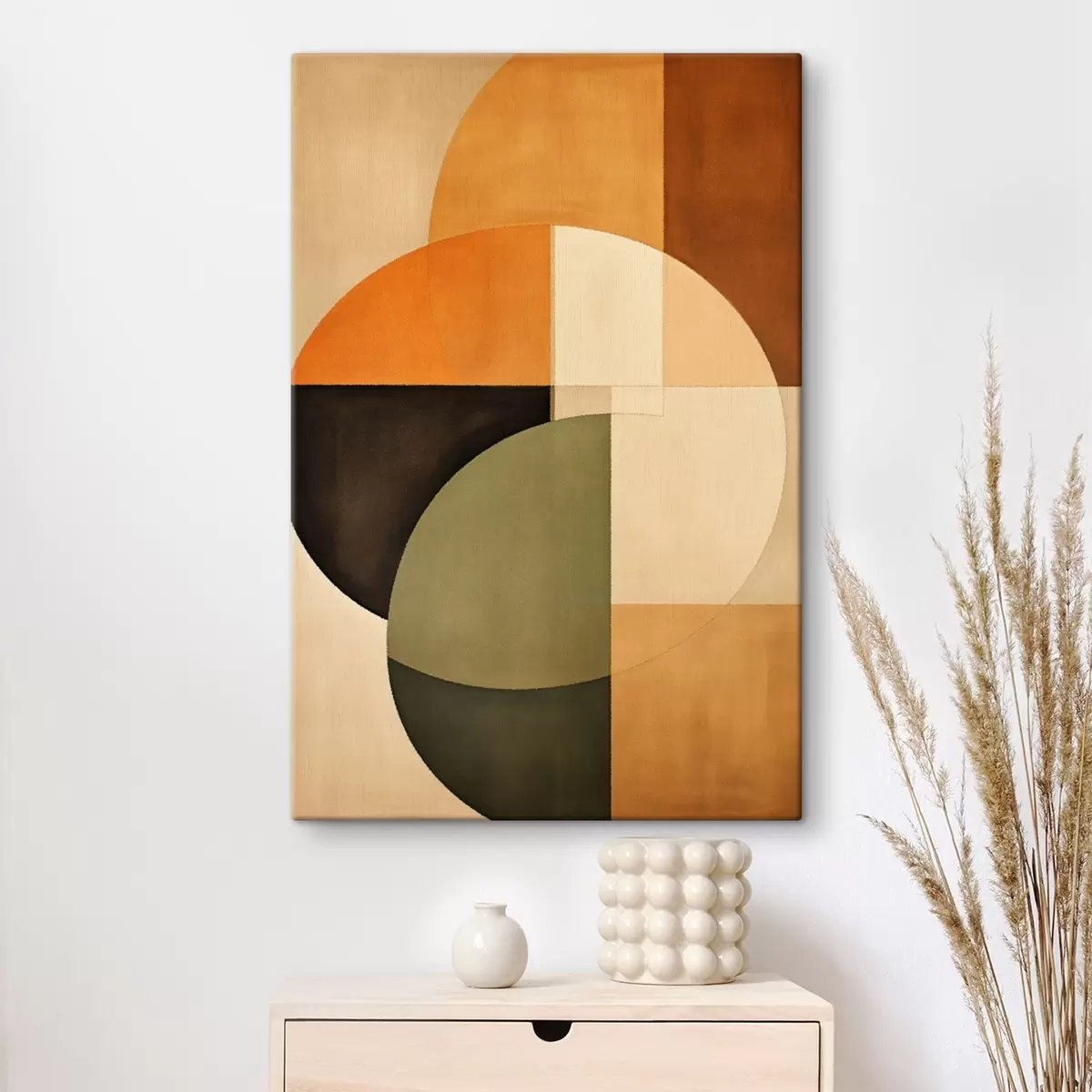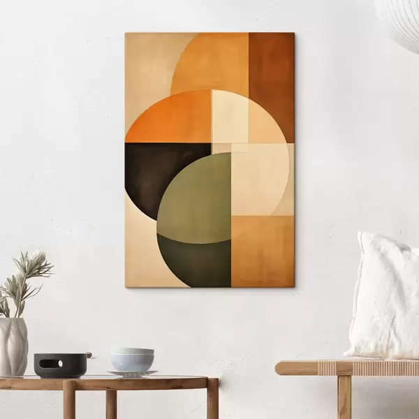 Schilderij Kruisende cirkels in een zand-olijfkleurig palet Art. s46537
