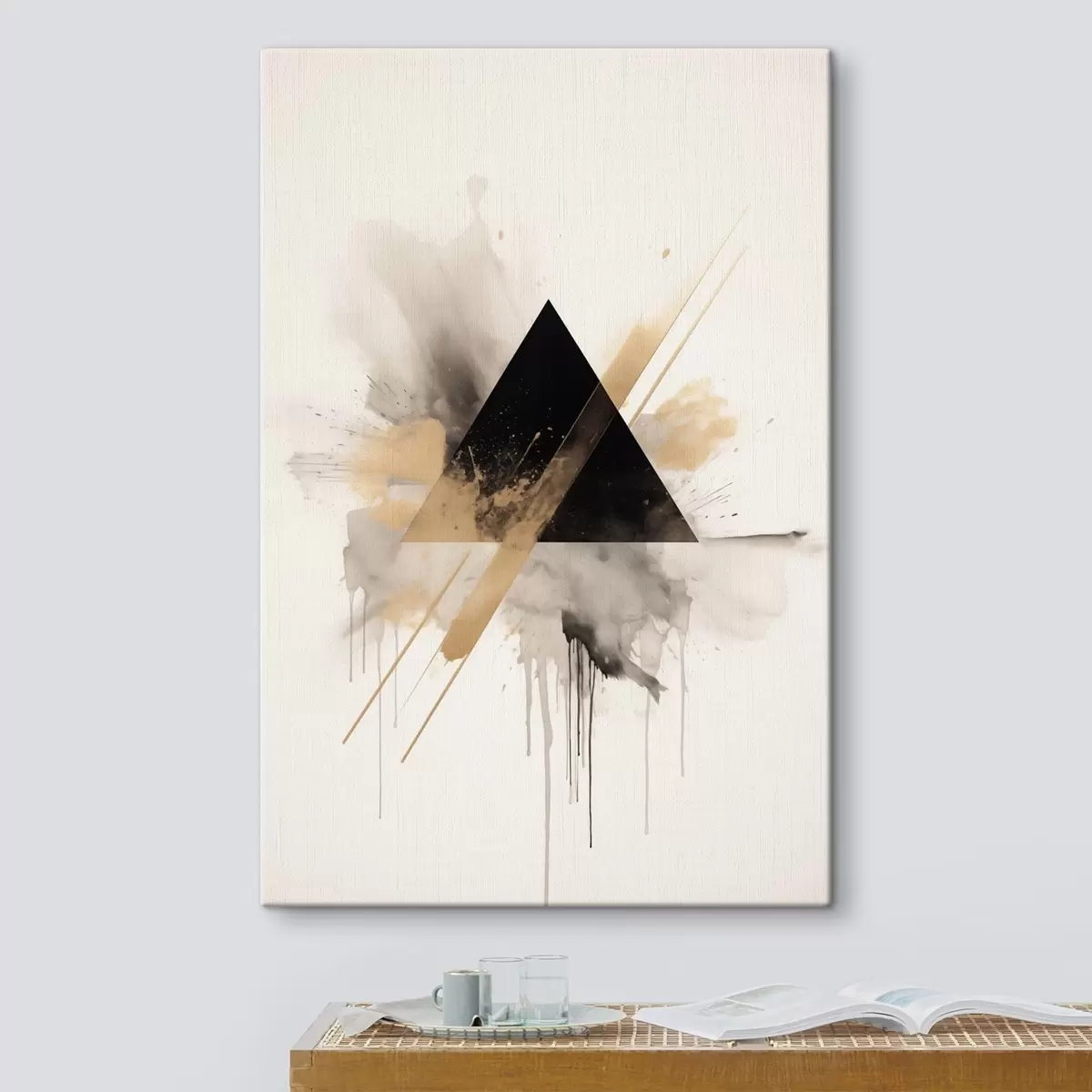 Schilderij Geometrie: zwarte driehoek met lichte spatten en lijnen Art. s46540