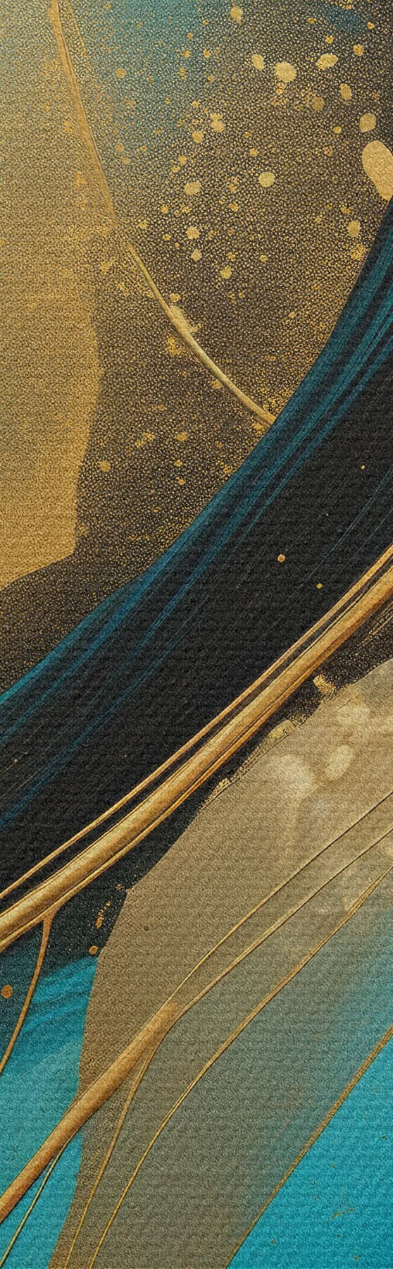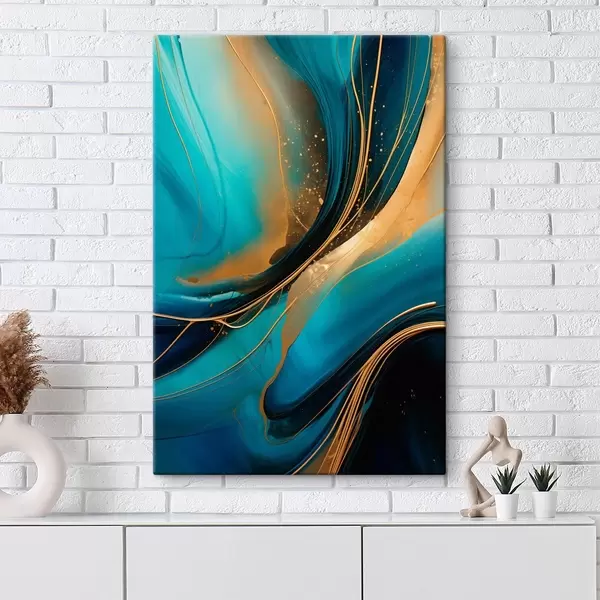 Schilderij Turquoise stroom met dunne okerkleurige draden Art. s46543