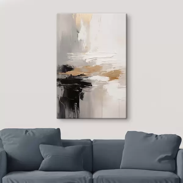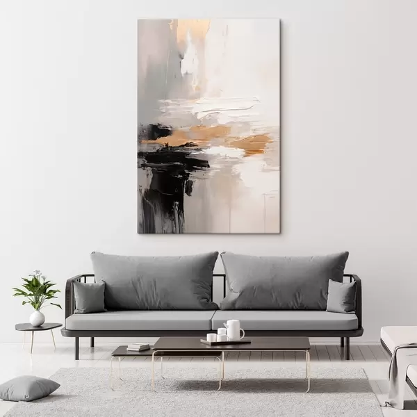 Schilderij Naaktkleurige streken met contrasterende zwarte en okerkleurige laag Art. s46544