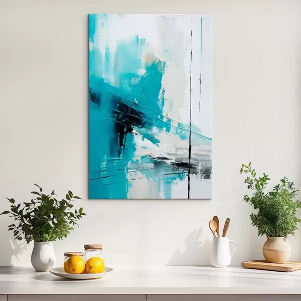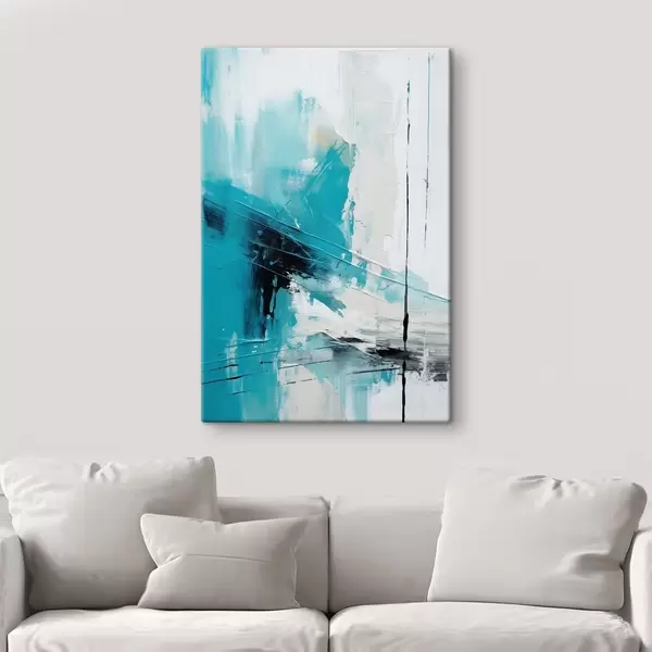 Schilderij Turquoise strepen op wit met een zwart streepje Art. s46545