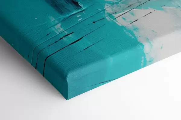 Schilderij Turquoise strepen op wit met een zwart streepje Art. s46545