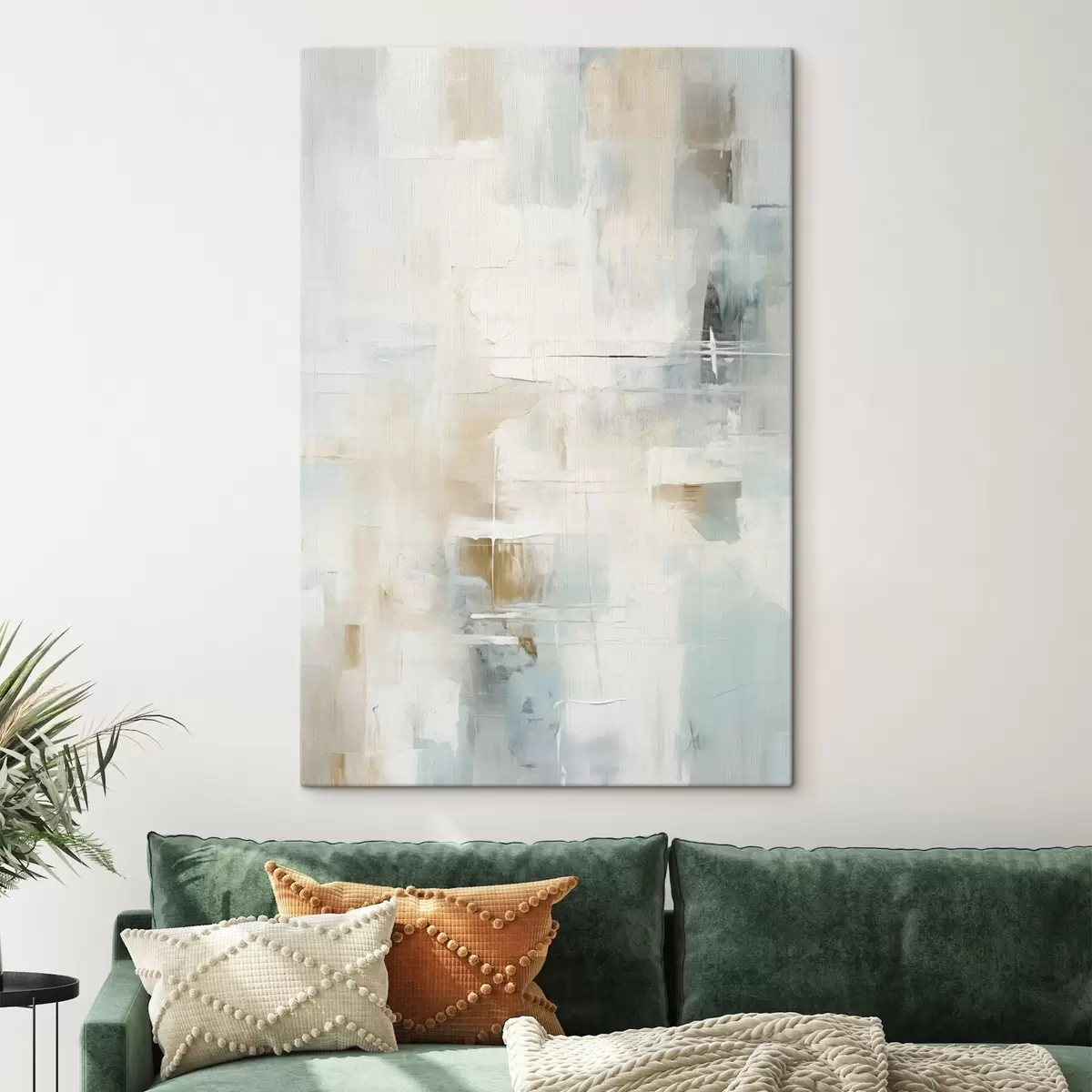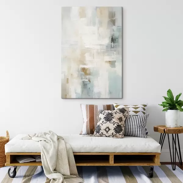 Schilderij Luchtige streken van blauw en beige op wit Art. s46547