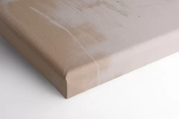 De fijne weving van draden op dit doek lijkt op het oppervlak van professionele schildersdoeken.