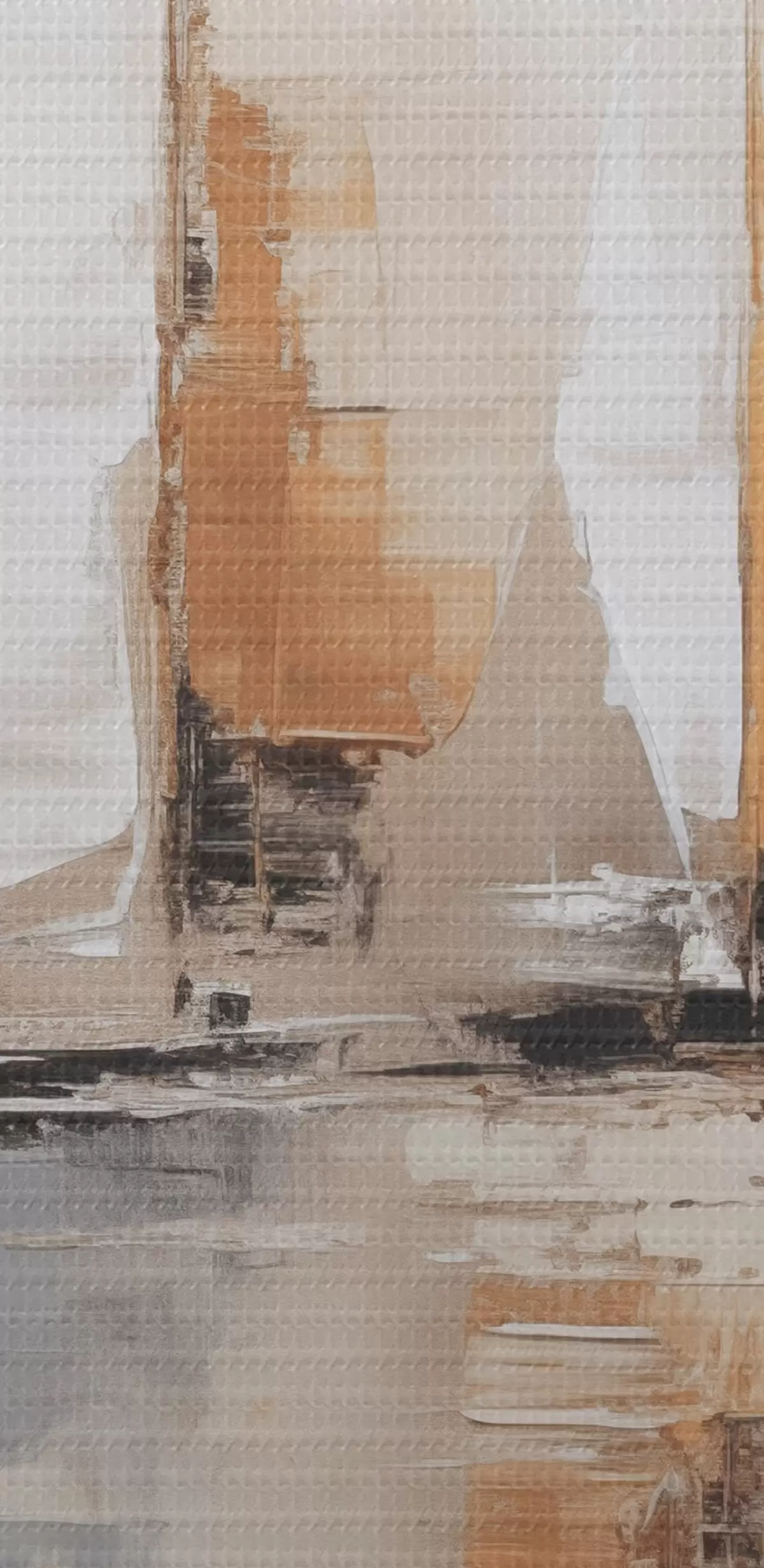 Het schilderij kan direct na ontvangst worden opgehangen. Het schilderij wordt opgespannen op een 2 cm breed houten spieraam.