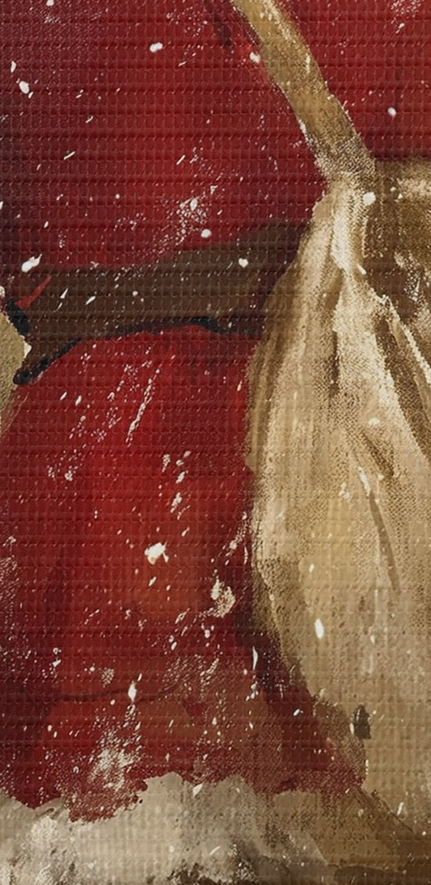 De fijne weving van draden op dit doek lijkt op het oppervlak van professionele schildersdoeken.