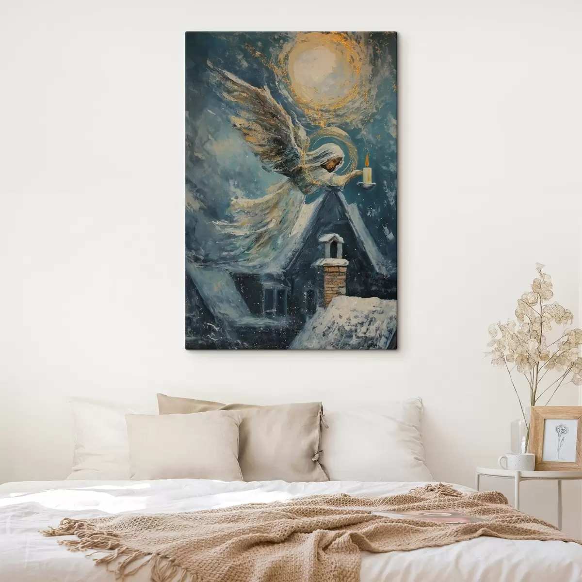 Je kunt het schilderij ophangen aan schroeven. Hiervoor leveren we bevestigingen bij onze foto's, zodat je de foto gemakkelijk kunt ophangen.