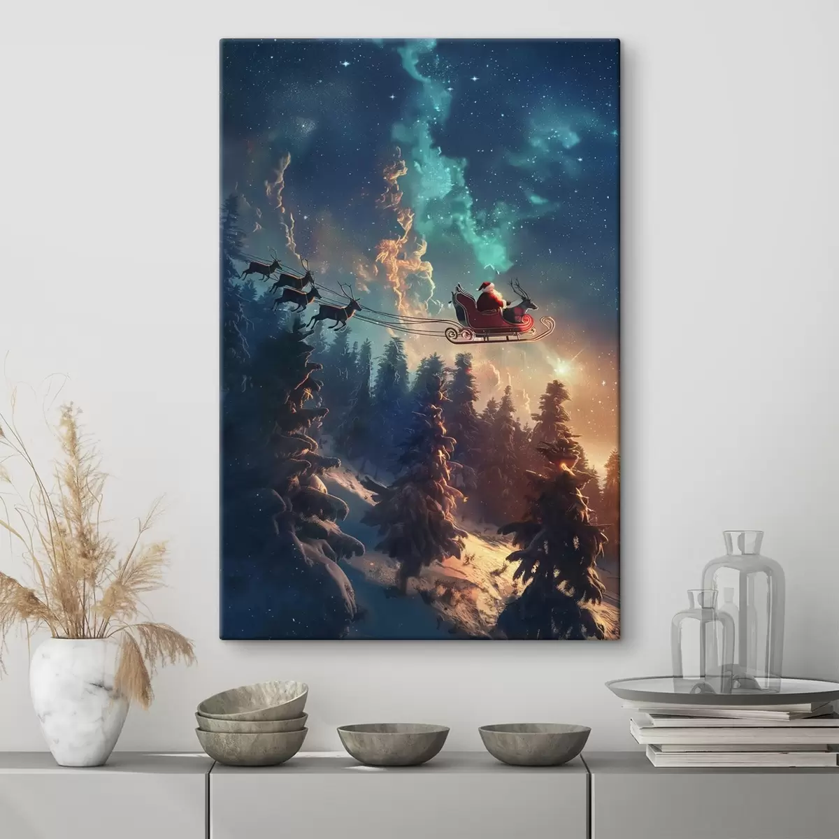 Schilderij Kerstman op rendieren Art. s46602