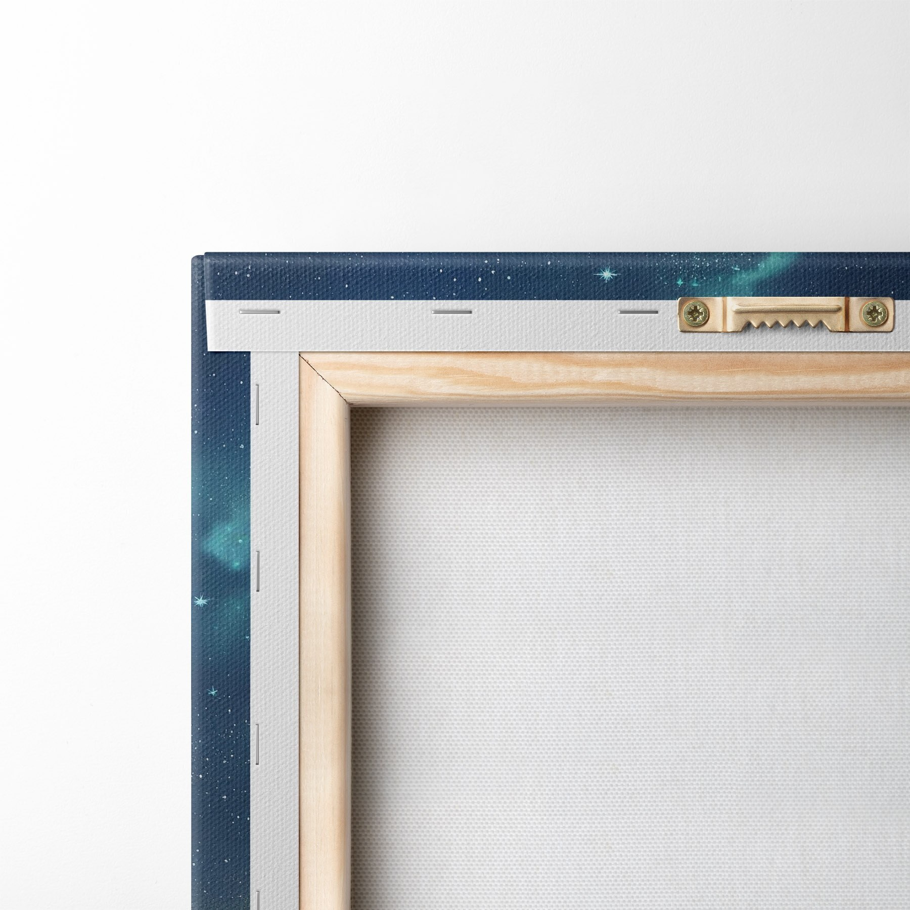 Om het doek op te spannen op spielatten zonder de afbeelding te beschadigen, gebruiken we gespiegeld beeld.