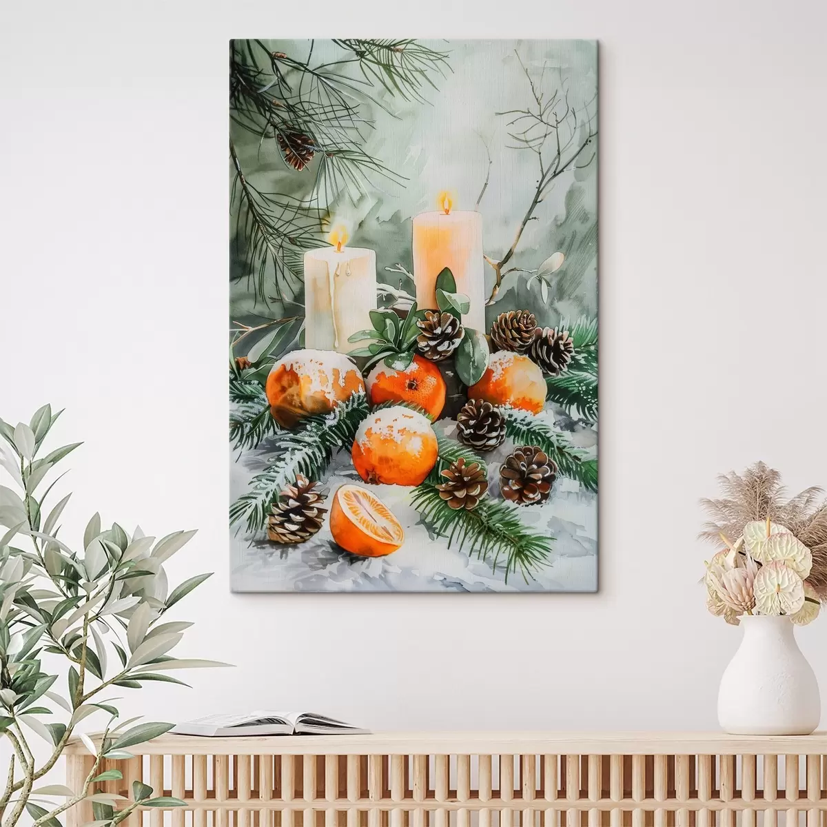 Schilderij Kaarsen, mandarijnen en dennenappels Art. s46614