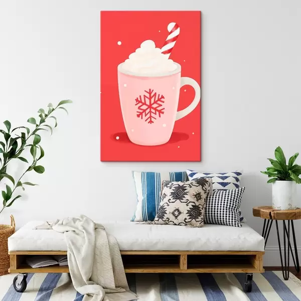 Schilderij Kerstcacao met slagroom en zuurstokjes Art. s46625