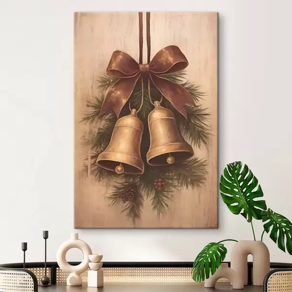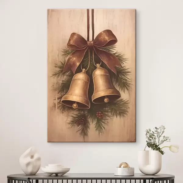 Schilderijen Vintage kerstdecoratie met twee belletjes en een strik s46626