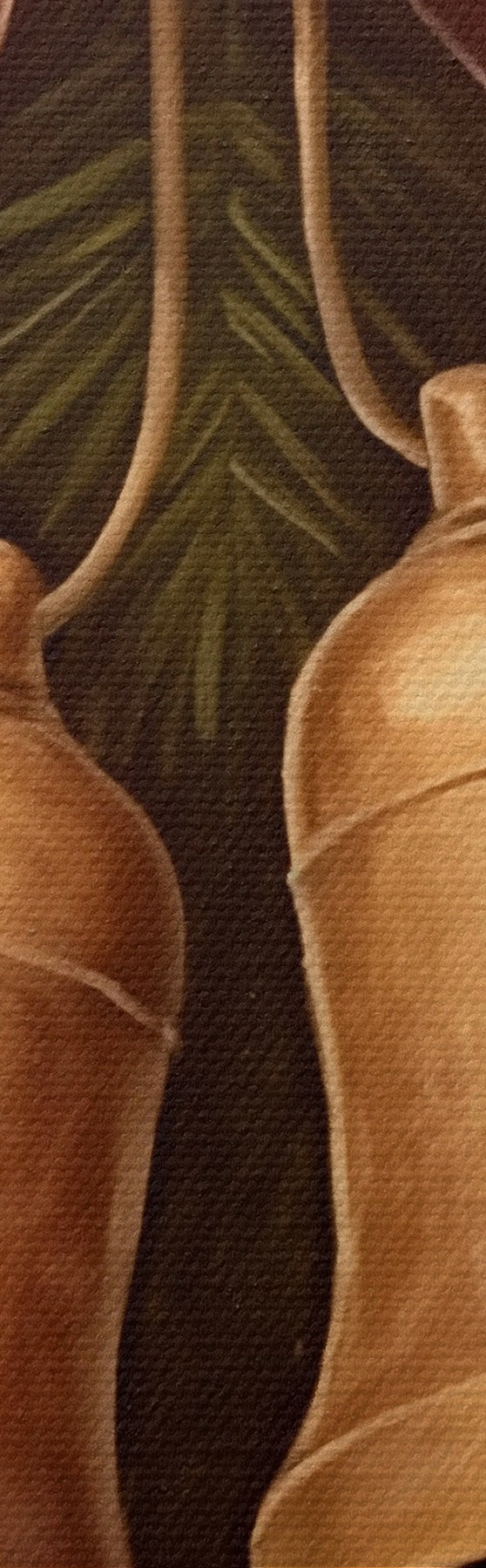 Het schilderij kan voorzichtig worden schoongeveegd met een droge zachte doek of spons; het wordt niet aanbevolen om natte producten te gebruiken. Het gebruik van een vochtige spons is alleen toegestaan als het schilderij gevernist is.