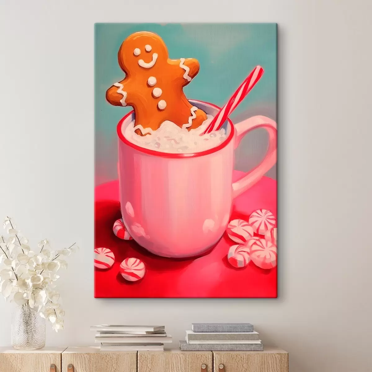 Schilderij Peperkoekmannetje in een kop warme chocolademelk Art. s46635