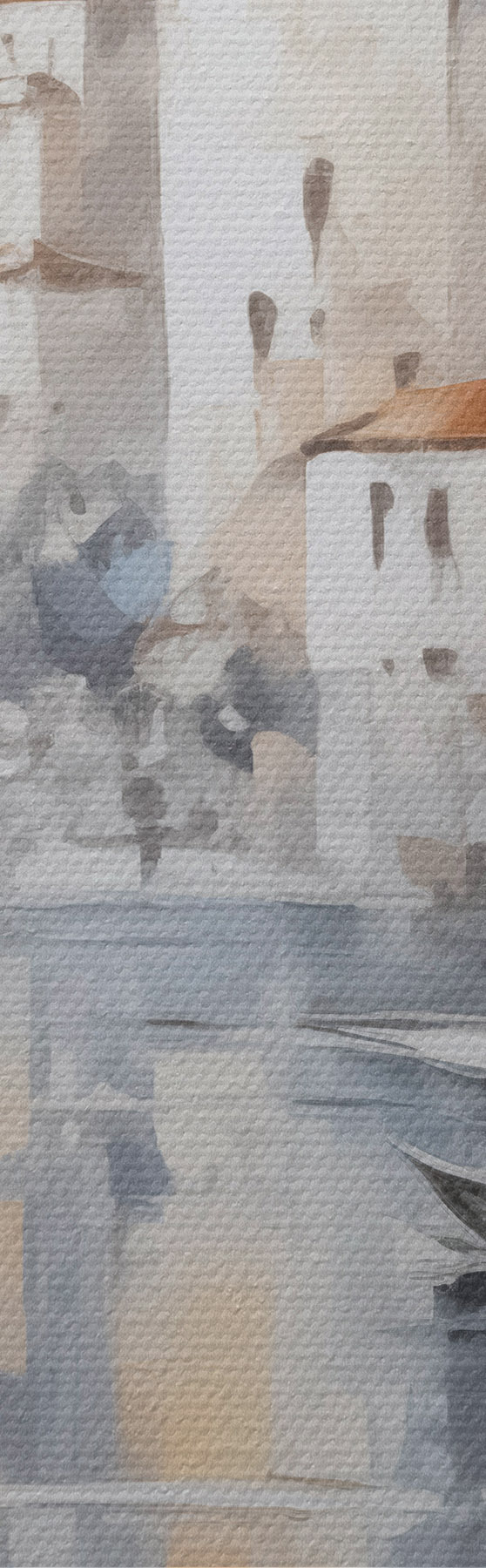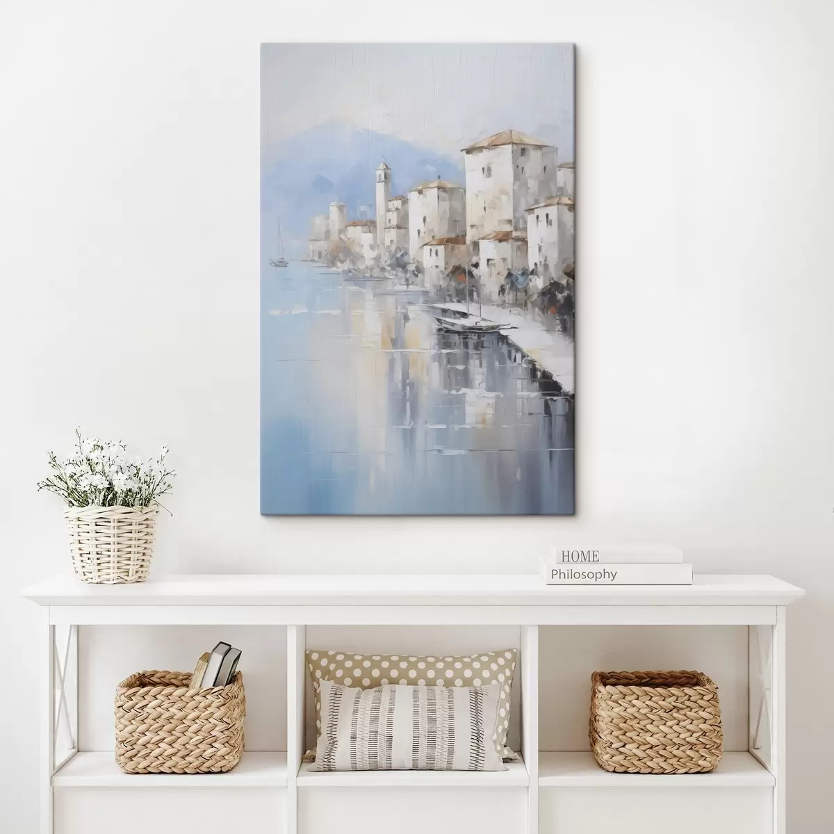 Schilderij Abstracte huizen aan de baai imitatie van schilderij Art. s46673