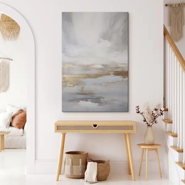 Het schilderij kan direct na ontvangst worden opgehangen. Het schilderij wordt opgespannen op een 2 cm breed houten spieraam.
