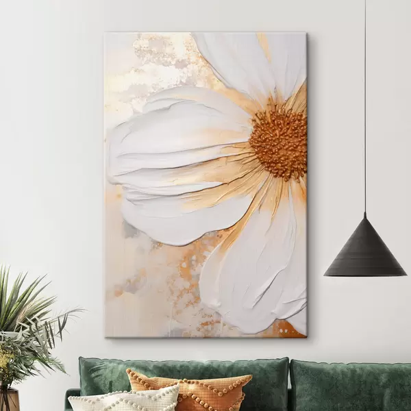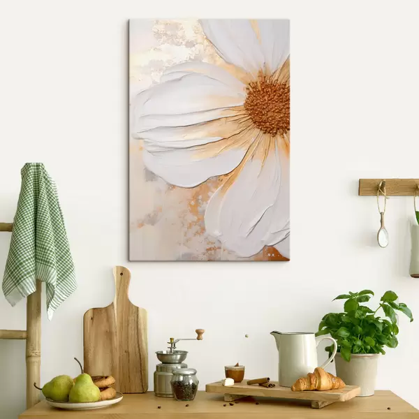 Schilderij Een witte bloem met delicate bloemblaadjes, een abstracte achtergrond met textuur, elegant, decoratieve kunst Art. s46692