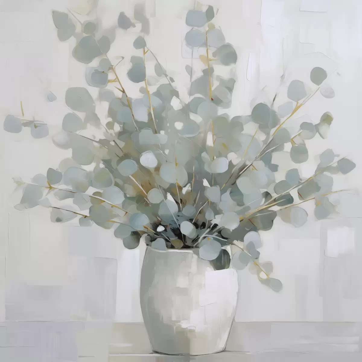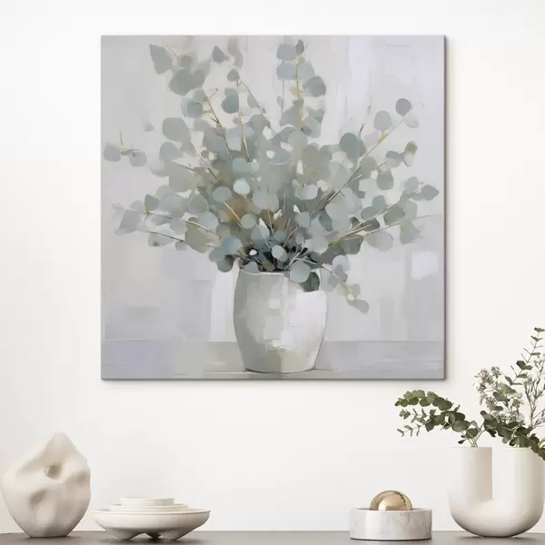 Schilderij Eucalyptustakken in een vaas, imitatie schilderij Art. s46713