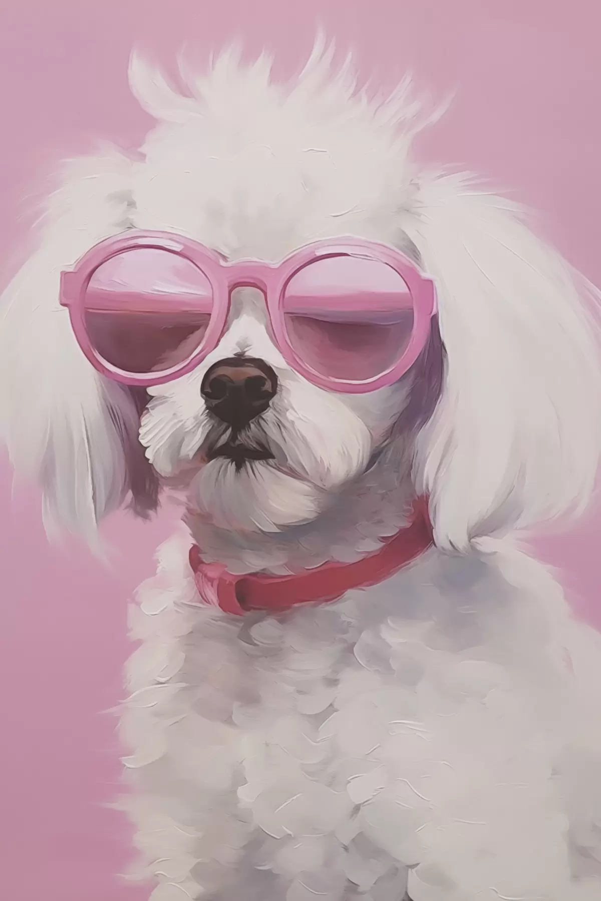 Schilderij Een kleine hond met een bril is een imitatie van een schilderij. Art. s46722