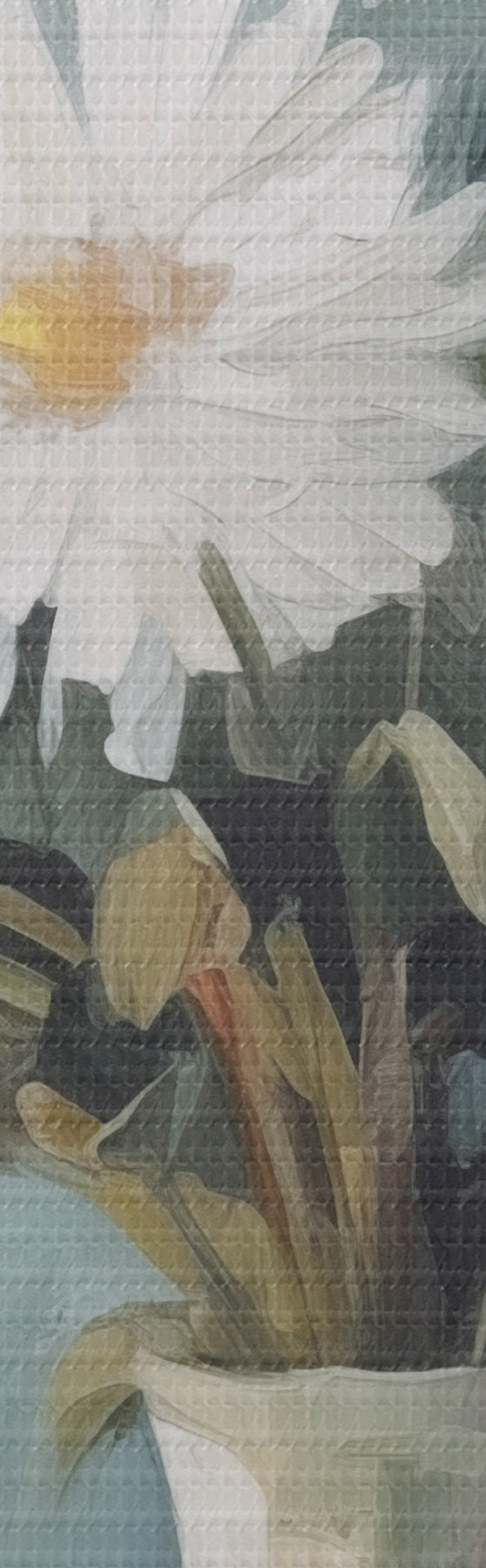 Er zijn drie soorten materiaal te bestellen: Economic Canvas - een dicht en duurzaam materiaal voor digitaal printen, identiek aan schildersdoek, waterdicht oppervlak, realistische weergave van details, materiaal met gemiddelde korrel. Premium Canvas - de textuur lijkt op die van schildersdoek (verweven kleine draden). Zachte, gedetailleerde reproductie van de afbeelding op een mat oppervlak. Eco-Premium - hoogwaardige 100% katoenen stof. Dankzij de natuurlijke katoenvezels is het materiaal duurzaam en slijtvast. Uitstekende kleurweergave en detail.