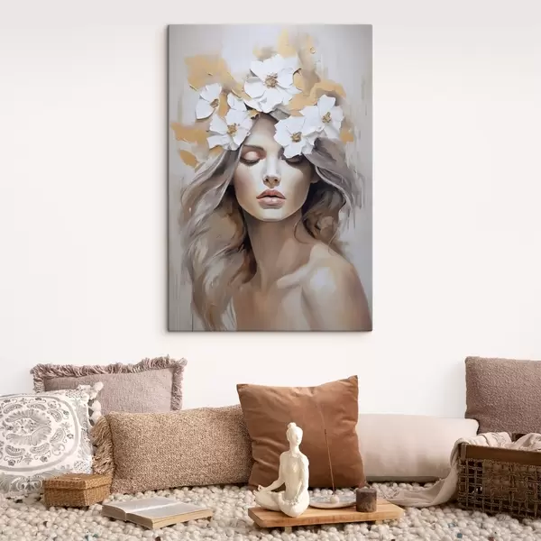 Schilderijen Abstract portret van een meisje met bloemen s46757