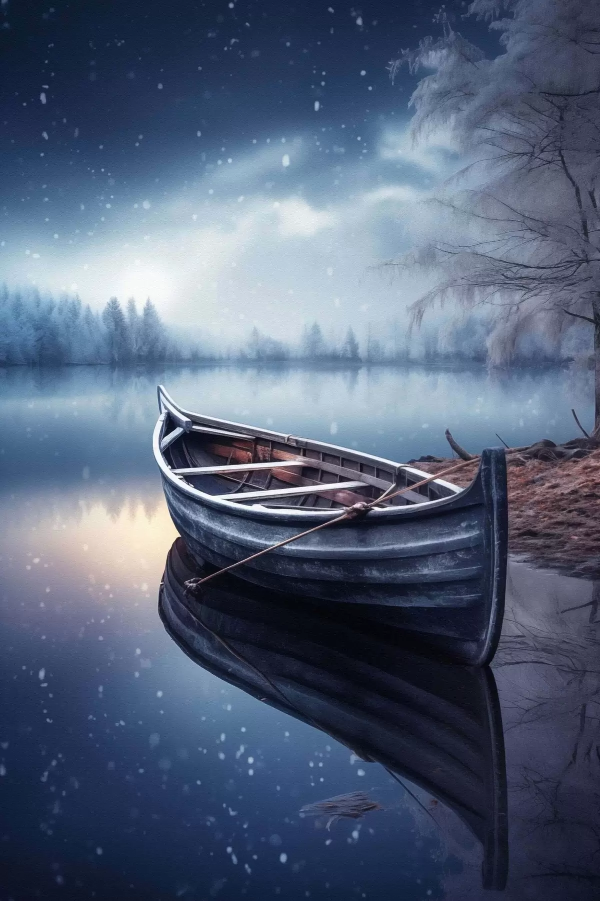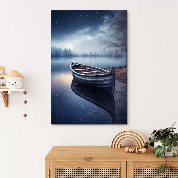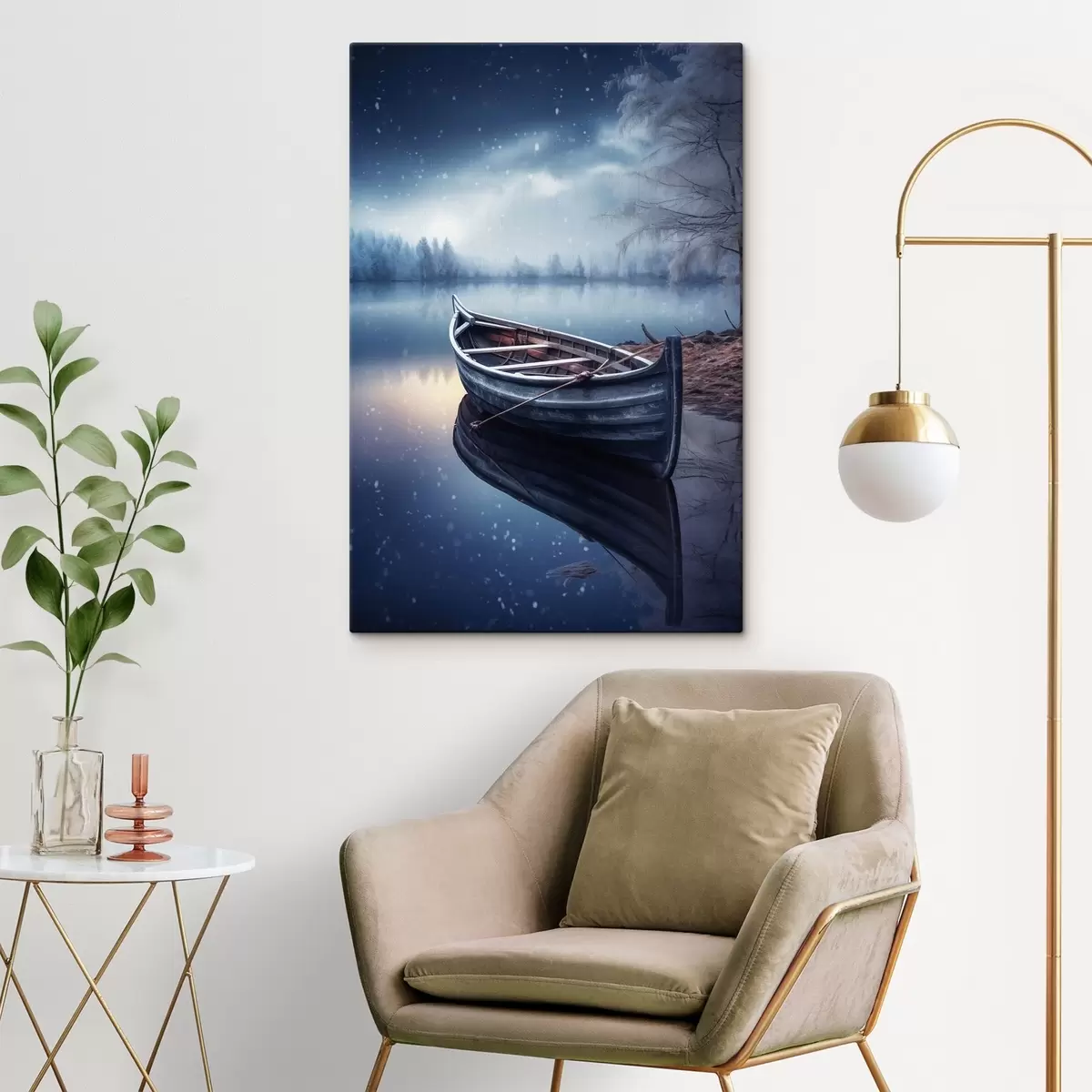 Schilderij Lege boot bij een wintermeer Art. s46773