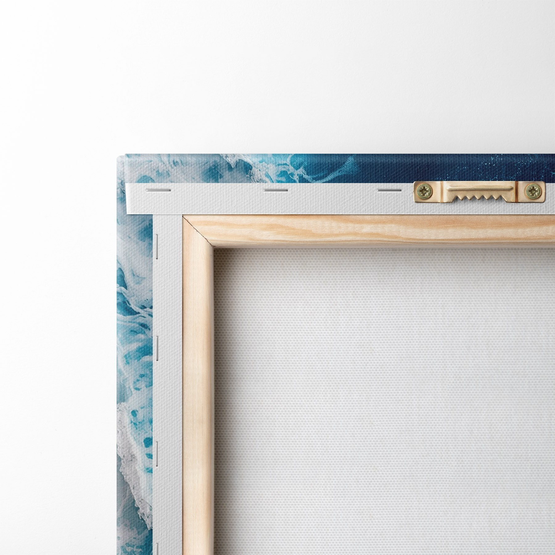 Je kunt het schilderij ophangen aan schroeven. Hiervoor leveren we bevestigingen bij onze foto's, zodat je de foto gemakkelijk kunt ophangen.