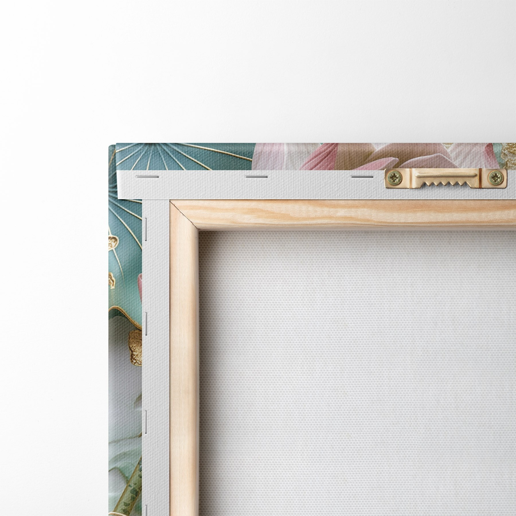 Om het doek op te spannen op spielatten zonder de afbeelding te beschadigen, gebruiken we gespiegeld beeld.