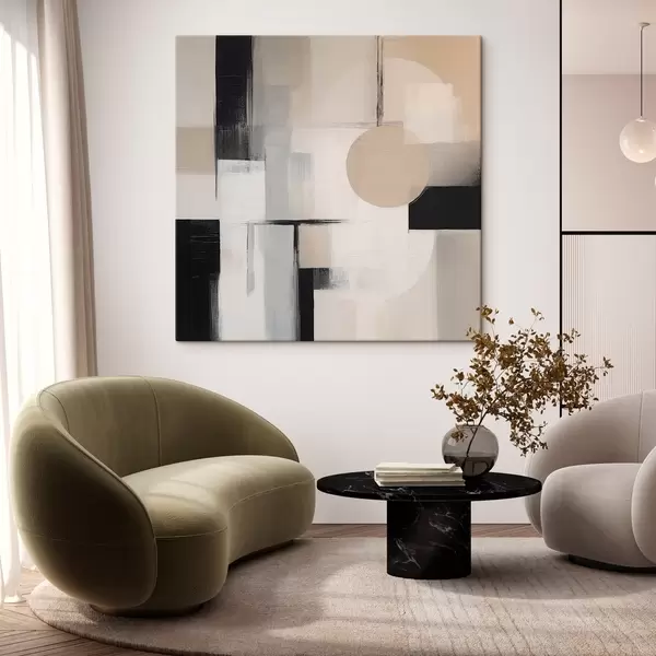 Het schilderij kan direct na ontvangst worden opgehangen. Het schilderij wordt opgespannen op een 2 cm breed houten spieraam.