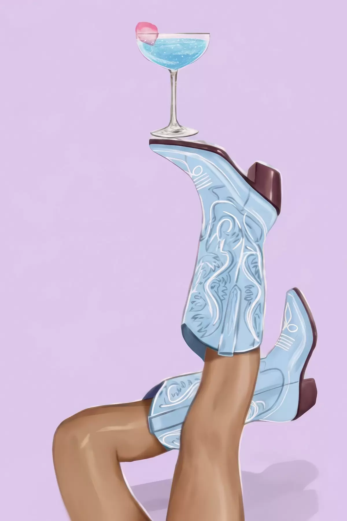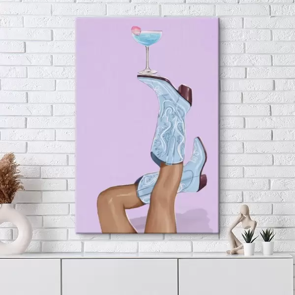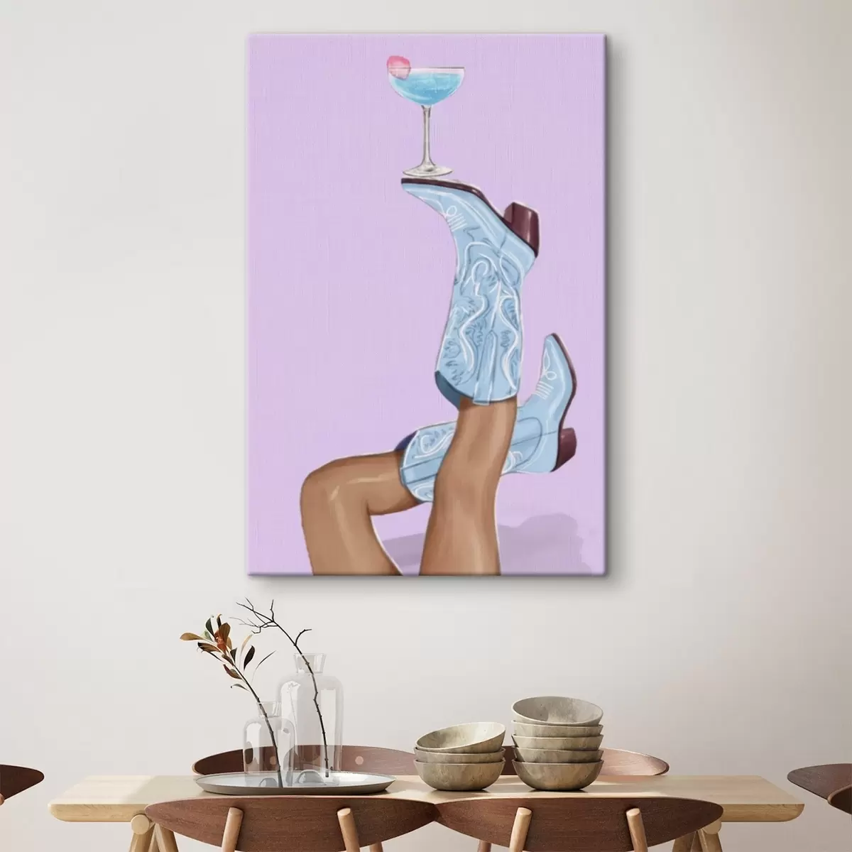 Schilderij Blauwe laarzen met een glas Art. s46845