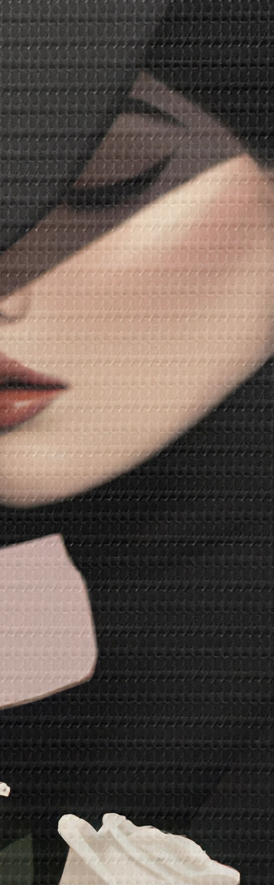 Om het doek op te spannen op spielatten zonder de afbeelding te beschadigen, gebruiken we gespiegeld beeld.
