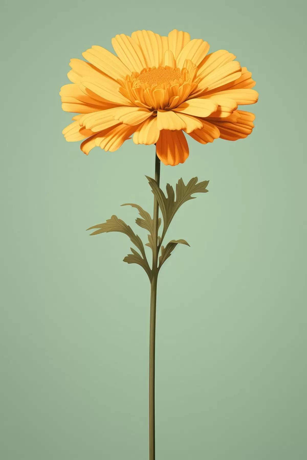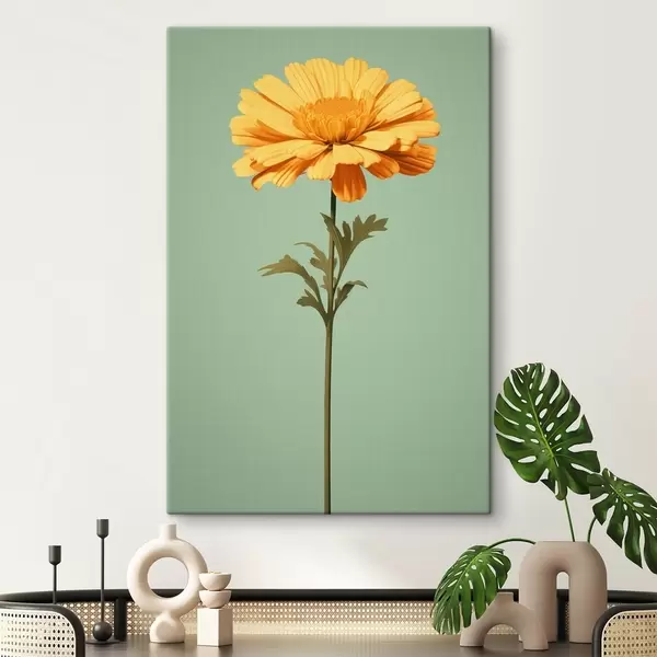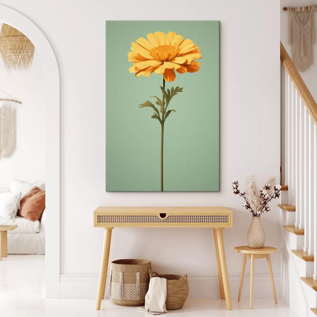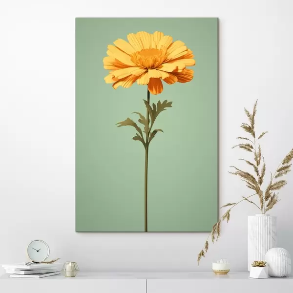Schilderij Gele calendula op een muntgroene achtergrond in minimalistische stijl Art. s46926