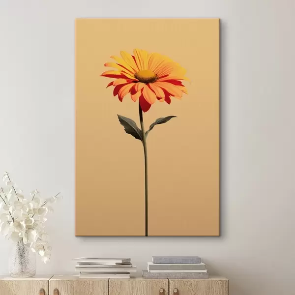 Schilderij Gerbera-bloem op een effen achtergrond met zacht licht in een minimalistische stijl Art. s46928