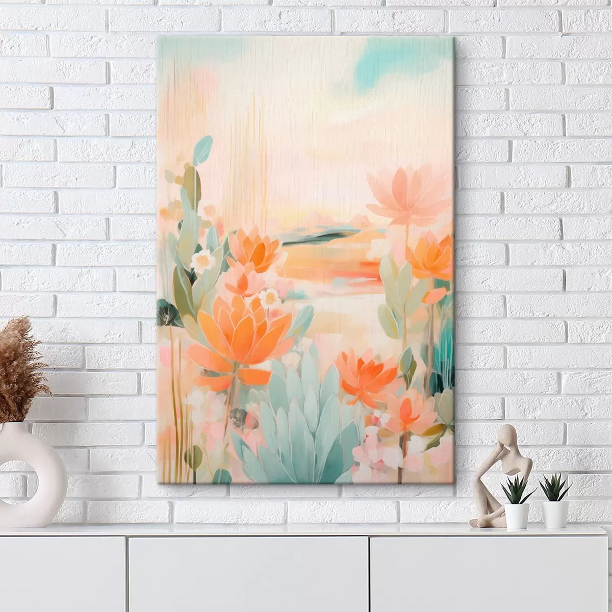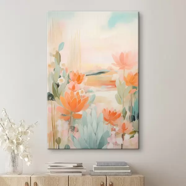 Schilderij Bloemenlandschap in roze en blauwe tinten in een eigentijdse schilderstijl Art. s46931