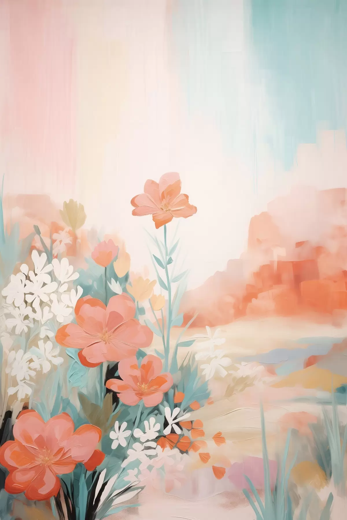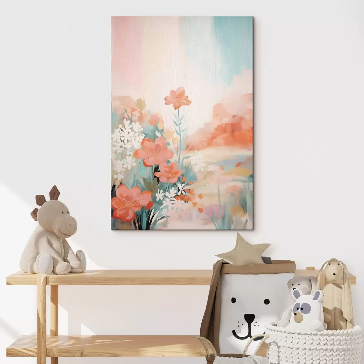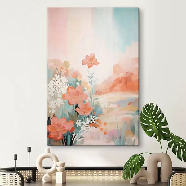 Schilderij Abstract bloemenlandschap in een roze-blauw kleurenpalet Art. s46932