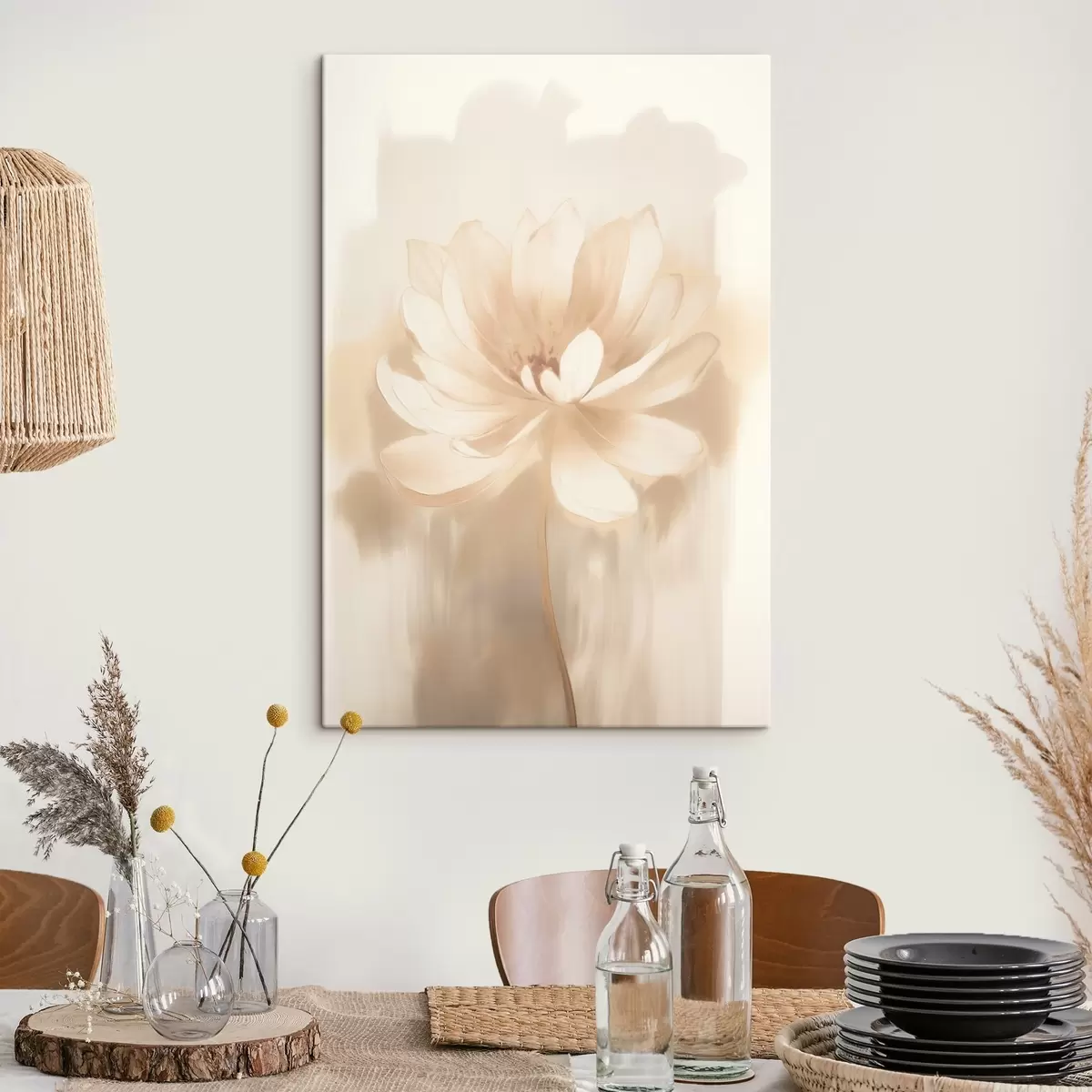 Schilderij Lotus met delicate schaduwen en een wazige achtergrond in een artistieke posterstijl Art. s46937