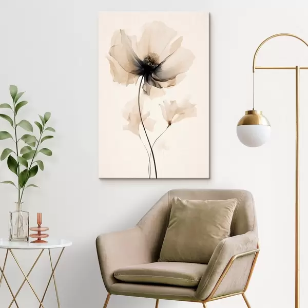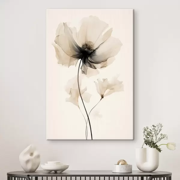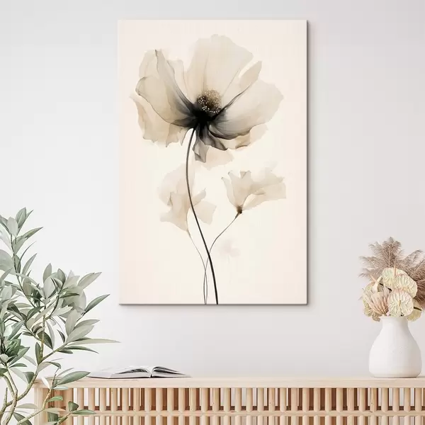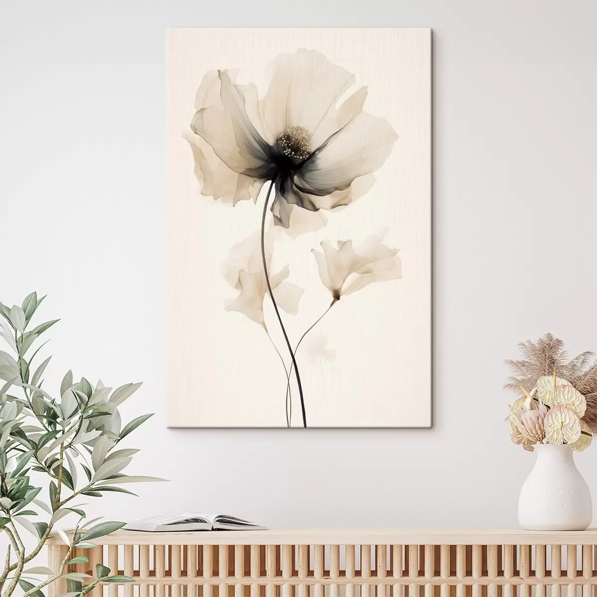 Schilderijen Delicate, semi-transparante bloem met een donker hart in minimalistische stijl s46944