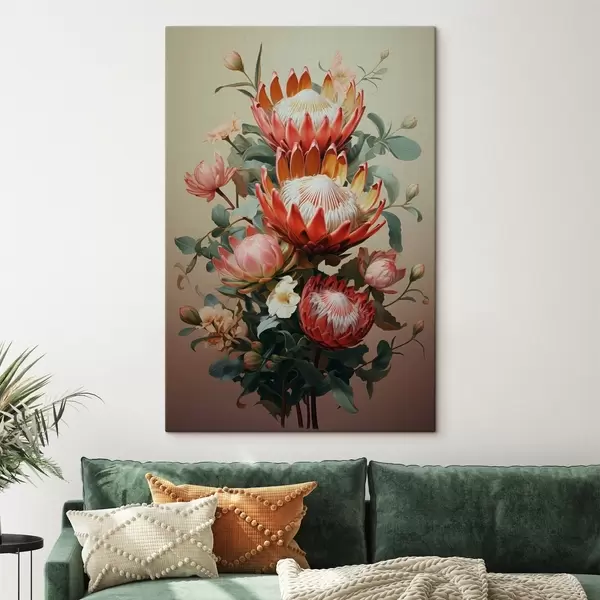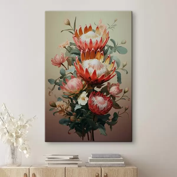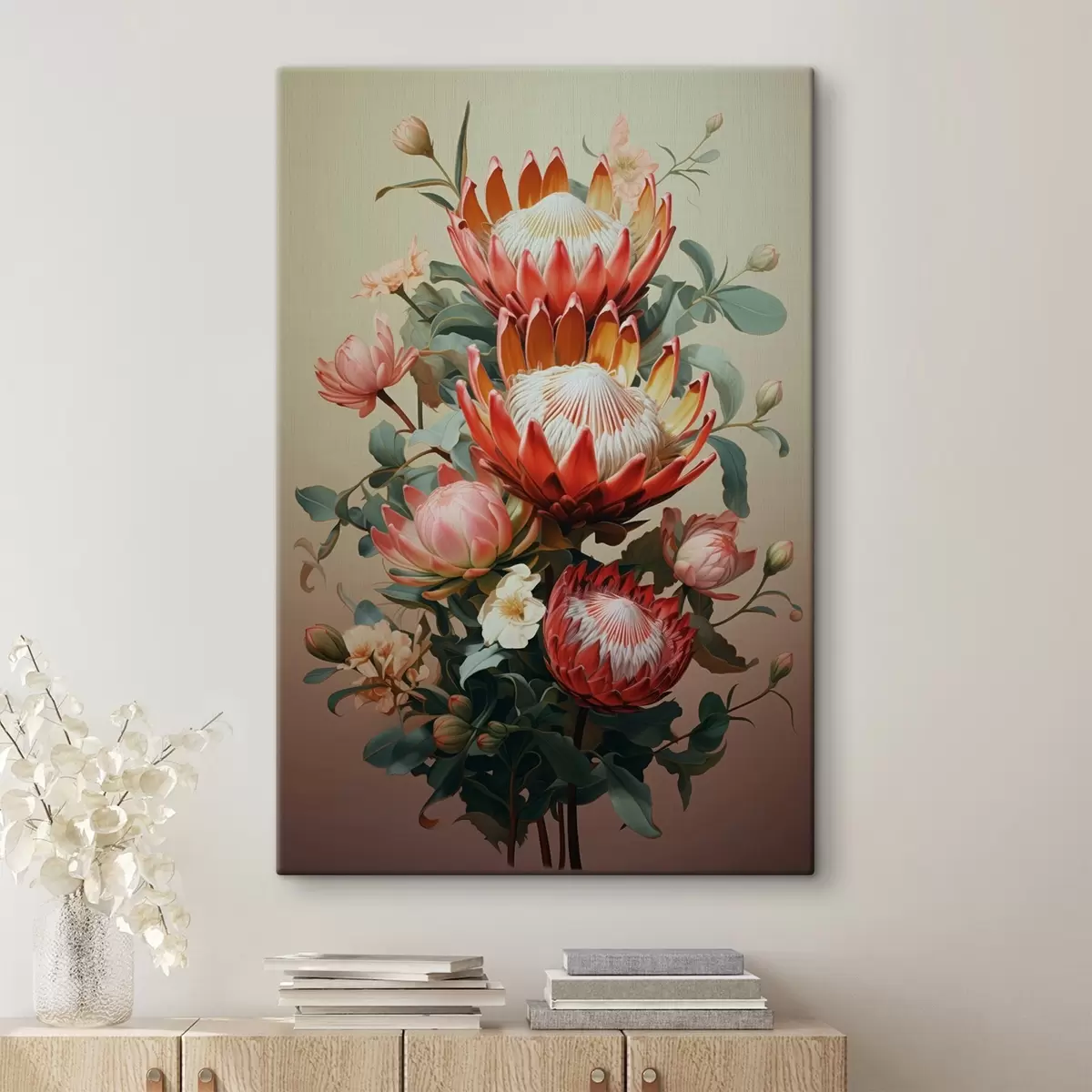 Schilderijen Compositie met grote protea's in een moderne digitale schilderachtige illustratiestijl s46947
